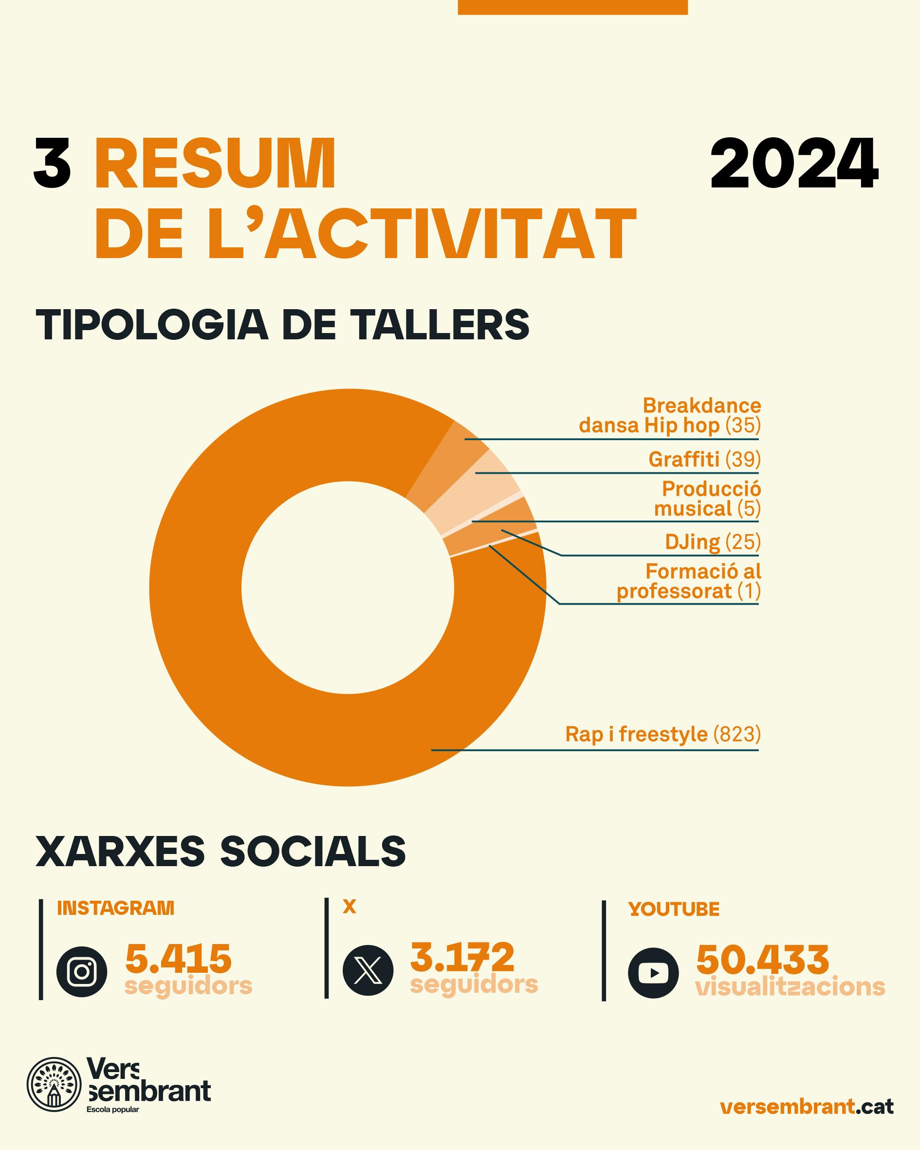 El 2024 hem reafirmat la nostra missió: educar amb cultura urbana per posar la creativitat, el pensament crític i la comunitat al centre del creixement dels i les joves. Ho fem amb valors clars —igualtat social, llibertat republicana, no-discriminació i antifeixisme— i amb una metodologia que situa l’estètica al servei de la crítica i el protagonisme en mans de l’alumnat. No és només fer tallers: és obrir espais d’escolta, empoderament i cooperació a l’aula i al territori.